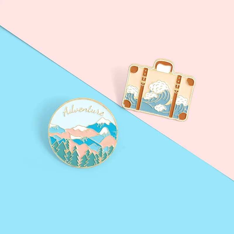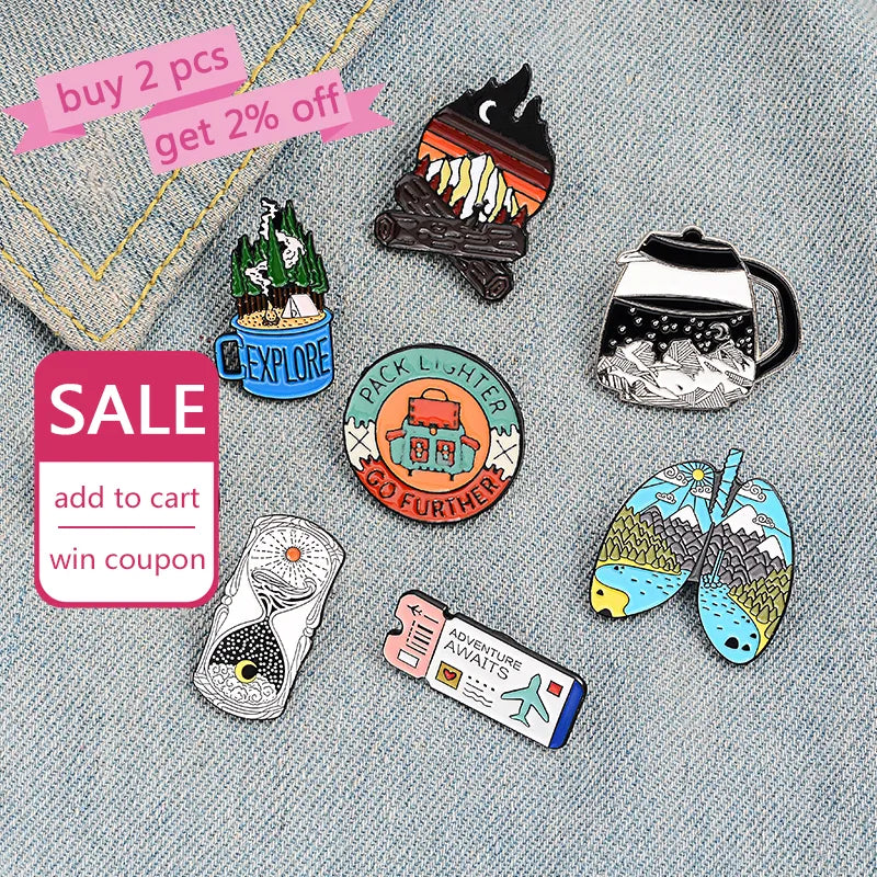 Outdoors Mountain Starry Night Enamel Pin Custom Wild Camping Hiking Brooches Bag Clothes Lapel Pin Adventure Badge Jewelry Gift